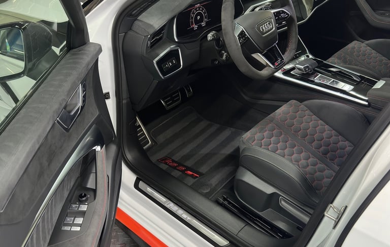 Le Pack Intérieur Intégral commence par un nettoyage écologique global : aspiration minutieuse, dégraissage des plastiques, tableau de bord et panneaux de portes, suivi du traitement complet des sièges (cuir, tissu ou alcantara).