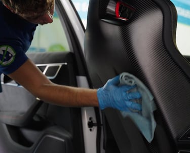 Cuir, tissu ou alcantara, chaque matière reçoit un traitement adapté et écologique sans eau.
